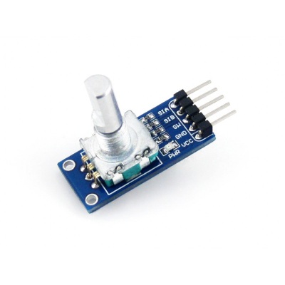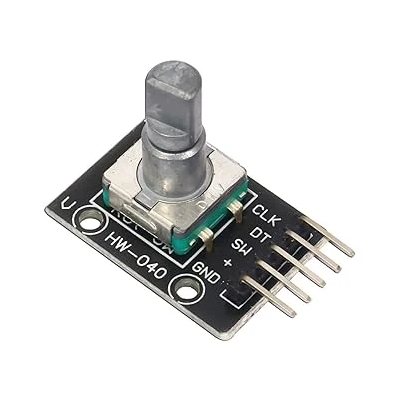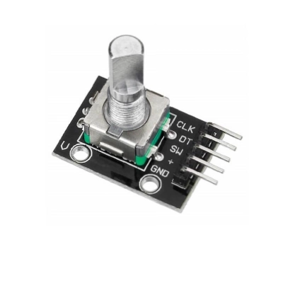 The Rotary Encoder Module is a sensor that converts rotary motion into digital signals. Equipped with a rotating shaft, it generates incremental pulses to indicate both direction and magnitude of rotation.